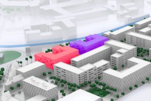 Neubau von 220 Mietwohnungen und 1 KiTa plus Studentenwohnheim mit 215 WE 11.300 m² oi BGF plus 9.000 m² Untergeschoss •